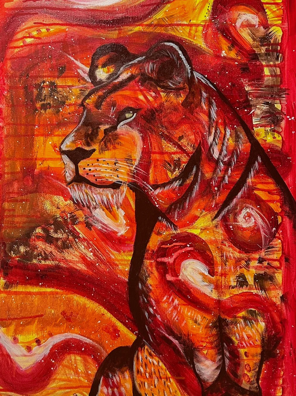 "Lioness Energy" - Mixed Media, 2023, Victoria Wells